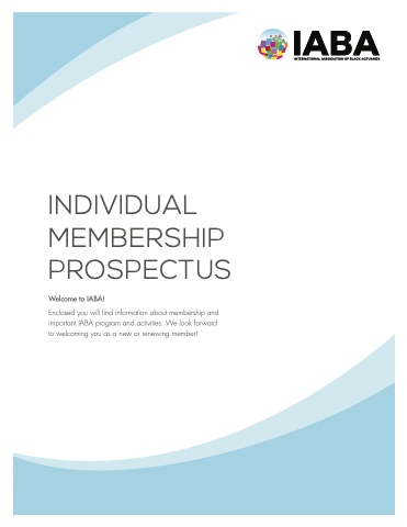 INDIVIDUAL MEMBERSHIP PROSPECTUS Welcome to IABA! Enclosed you will find information about membership and important IABA program and activities. We look forward to welcoming you as a new or renewing member!
