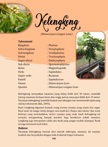 Kelengkeng merupakan tanaman yang hidup lebih dari 50 tahun, memiliki