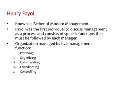 • Fayol was the first individual to discuss management