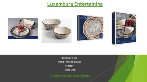 Luxemburg Entertaining • Bakeware Set • Hand Painted Bowls • Platter • Tidbit Dish Pricing Provided Upon Request