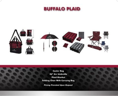 BUFFALO PLAID Cooler Bag 46” Arc Umbrella Plaid Blanket Folding Chair With Carrying Bag Pricing Provided Upon Request