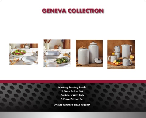GENEVA COLLECTION Nesting Serving Bowls 2 Piece Baker Set Canisters With Lids 5 Piece Pitcher Set Pricing Provided Upon Request