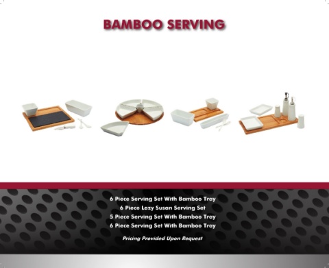 BAMBOO SERVING 6 Piece Serving Set With Bamboo Tray 6 Piece Lazy Susan Serving Set 5 Piece Serving Set With Bamboo Tray 6 Piece Serving Set With Bamboo Tray Pricing Provided Upon Request