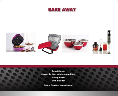 BAKE AWAY Donut Maker Casserole Dish with Insulated Bag Mixing Bowls Stick Blender Pricing Provided Upon Request