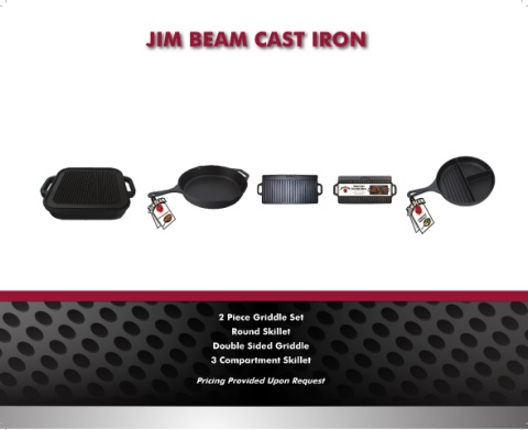 JIM BEAM CAST IRON 2 Piece Griddle Set Round Skillet Double Sided Griddle 3 Compartment Skillet Pricing Provided Upon Request