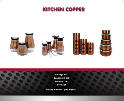 KITCHEN COPPER Storage Set Condiment Set Canister Set Bowl Set Pricing Provided Upon Request