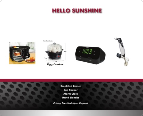 HELLO SUNSHINE Breakfast Center Egg Cooker Alarm Clock Hand Blender Pricing Provided Upon Request