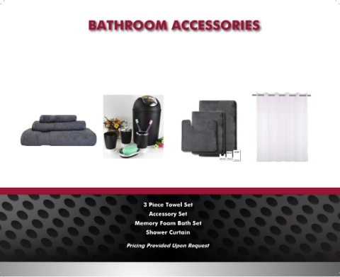 BATHROOM ACCESSORIES 3 Piece Towel Set Accessory Set Memory Foam Bath Set Shower Curtain Pricing Provided Upon Request