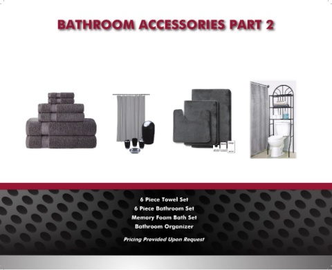 BATHROOM ACCESSORIES PART 2 6 Piece Towel Set 6 Piece Bathroom Set Memory Foam Bath Set Bathroom Organizer Pricing Provided Upon Request