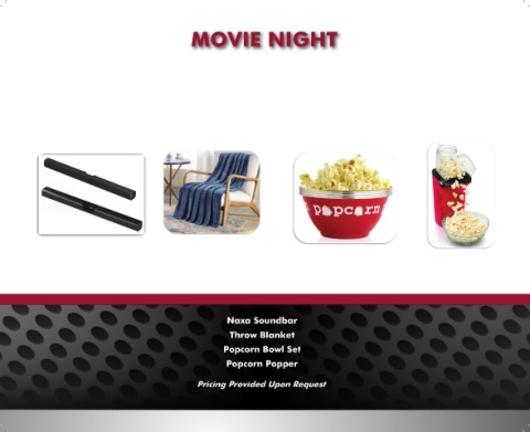 MOVIE NIGHT Naxa Soundbar Throw Blanket Popcorn Bowl Set Popcorn Popper Pricing Provided Upon Request