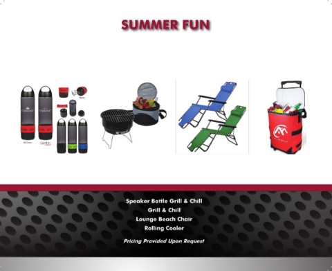 SUMMER FUN Speaker Bottle Grill & Chill Grill & Chill Lounge Beach Chair Rolling Cooler Pricing Provided Upon Request