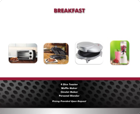 BREAKFAST 4 Slice Toaster Waffle Maker Omelet Maker Personal Blender Pricing Provided Upon Request