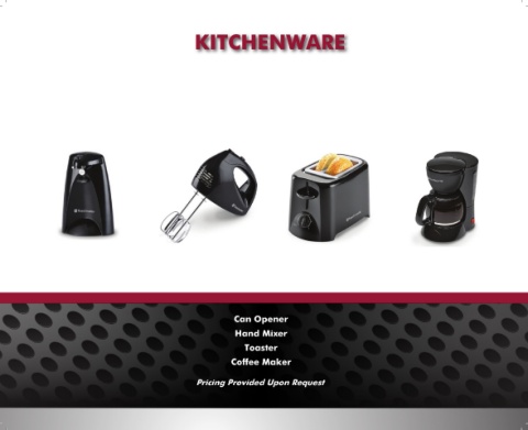 KITCHENWARE Can Opener Hand Mixer Toaster Coffee Maker Pricing Provided Upon Request