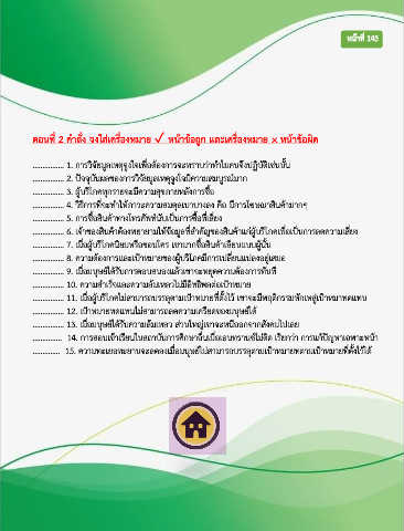 ตอนที่ 2 คําสั่ง จงใส่เครื่องหมาย ✓ หน้าข้อถูก และเครื่องหมาย × หน้าข้อผิด