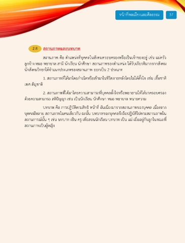 บทบาท คือ การปฏิบัติตามสิทธิ หน้าที่ อันเนื่องมาจากสถานภาพของบุคคล เนื่องจาก