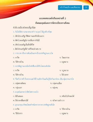 แบบทดสอบหลังเรียนหน่วยที่ 2