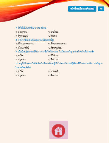 ค. รัฐธรรมนูญ ง. ศาสนา