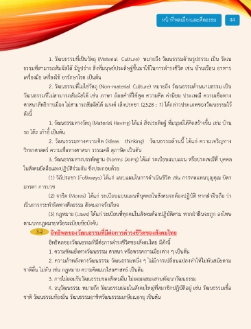 1. วัฒนธรรมที่เป็นวัตถุ (Material Culture) หมายถึง วัฒนธรรมด้านรูปธรรม เป็น วัดเน