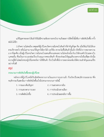 แก้ปัญหาของเขาได้แล้วจึงไม่มีความต้องการเขายังอาจเก็บผลการใช้ครั้งนี้เพื่อการตัดสินใจซื้อ ครั้ง