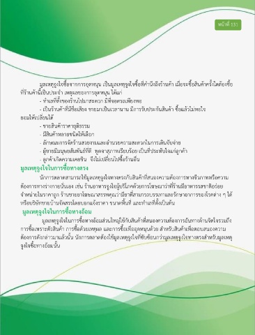 การซื้อเพราะตัวสินค้า การซื้อด้วยเหตุผล และการซื้อเพื่ออุดหนุนด้วย สําหรับสินค้าเพื่อตอบสนองความ