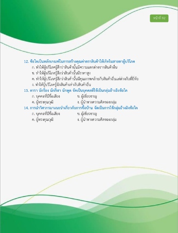 12. ข้อใดเป็นหลักเกณฑ์ในการสร้างคุณค่าตราสินค้าให้เกิดในสายตาผู้บริโภค