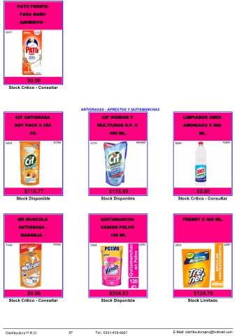 Distribuidora P.R.O. 87 Tel.: 0351-458-8927 E-Mail: distribuidorapro@hotmail.com