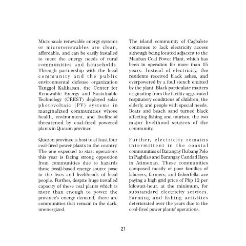to meet the energy needs of rural Mauban Coal Power Plant, which has