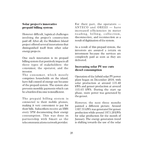 their bills. Subscribers receive an SMS 1307.55 kWh was generated for genset
