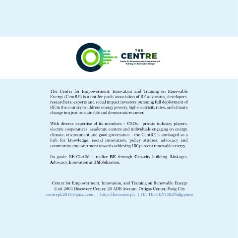 Energy (CentRE) is a not-for-prot association of RE advocates, developers,