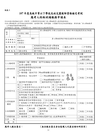 ※本表填妥後與報名表件一併郵寄,以憑辦理(詳見附錄 3 身心障礙應考人應考服務要點)
