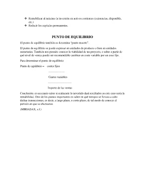 El punto de equilibrio se puede expresar en unidades de producto o bien en unidades