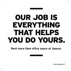 OUR JOB IS EVERYTHING THAT HELPS YOU DO YOURS. Rent more than office space at Spaces. www.spaces.nl