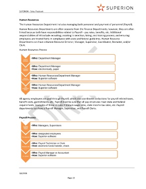 departments can have a Payroll Manager, Supervisor, and Payroll Clerks.