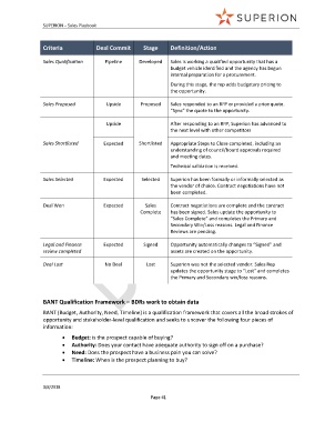 Criteria Deal Commit Stage Definition/Action