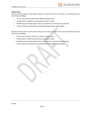 Now you have to create an action plan to keep you on track for success. On this plan, list the key tactics you