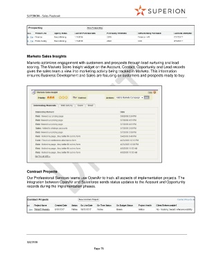 gives the sales team a view into marketing activity being tracked in Marketo. This information