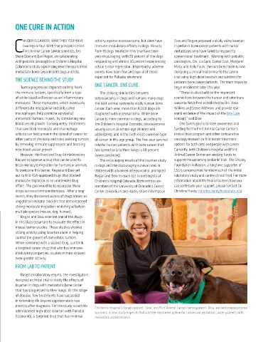 counterparts. The dog immune system responds to tumors and stages, possibly leading to a canine preventive cancer vaccine, THE SCIENCE BEHIND THE STUDY pediatric bone cancer patients. The team hopes to