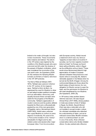 of Egyptian clerics, Muhammad Abduh     not hesitate to accept modern culture.                changes would inspire many scholars    texts but it is not included in the texts