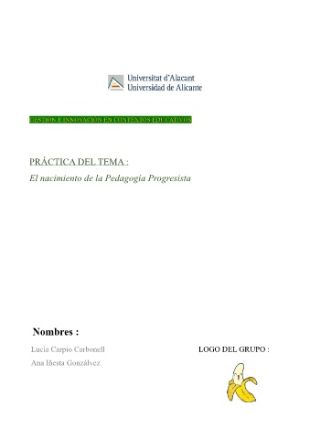 GESTIÓN E INNOVACIÓN EN CONTEXTOS EDUCATIVOS PRÁCTICA DEL TEMA : El nacimiento de la Pedagogía Progresista Nombres : Lucía Carpio Carbonell LOGO DEL GRUPO : Ana Iñesta Gonzálvez