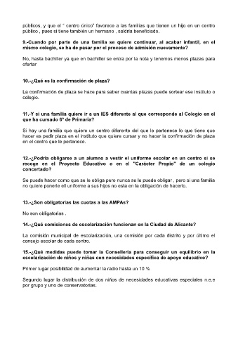 públicos, y que el “ centro único” favorece a las familias que tienen un hijo en un centro