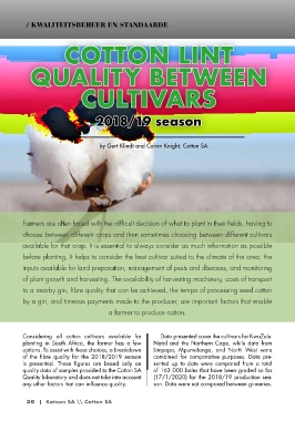 Considering all cotton cultivars available for Data presented cover the cultivars for KwaZulu-