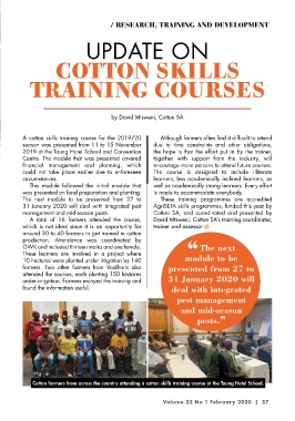 UPDATE ON SMALLHOLDER A cotton skills training course for the 2019/20 Although farmers often find it difficult to attend