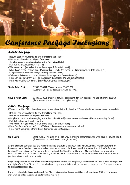 As per previous conferences, the Hamilton Island program is all about family involvement. We look forward to