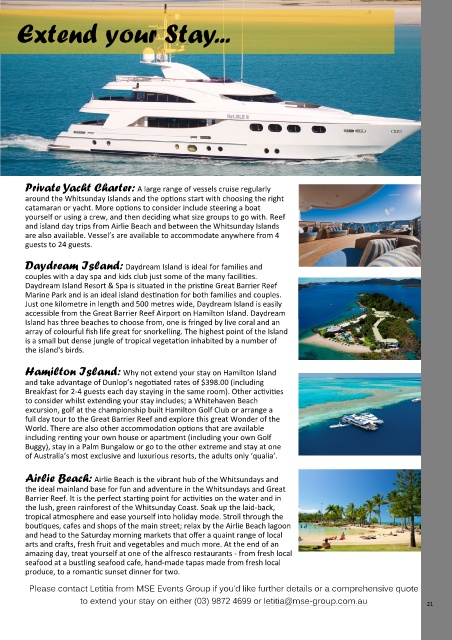 to extend your stay on either (03) 9872 4699 or letitia@mse-group.com.au 21