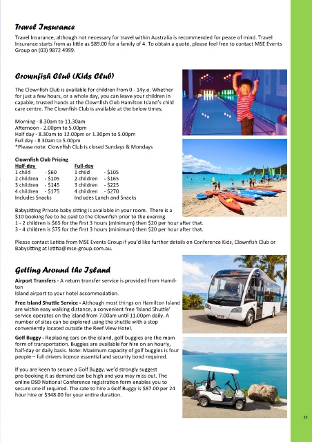 Please contact Le a from MSE Events Group if you’d like further details on Conference Kids, Clownfish Club or