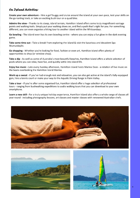Take a tour ‐ If you’re a er some organised fun, Hamilton Island offer a huge selec on of professional