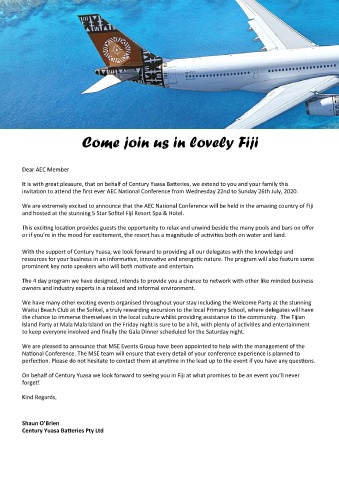 On behalf of Century Yuasa we look forward to seeing you in Fiji at what promises to be an event you’ll never