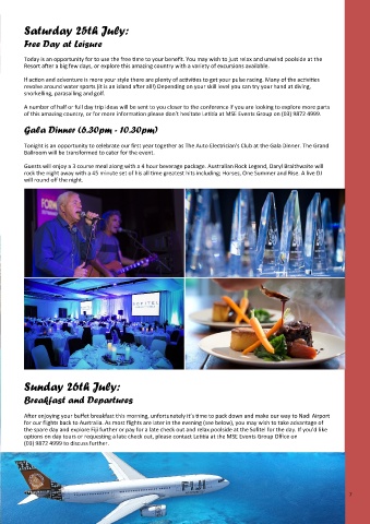 options on day tours or requesting a late check out, please contact Letitia at the MSE Events Group Office on