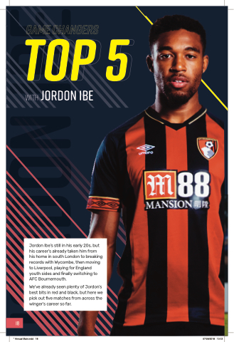 Jordon Ibe’s still in his early s, but his career’s already taken him from his home in south London to breaking records with Wycombe, then moving to Liverpool, playing for England youth sides and nally switching to AFC Bournemouth.
