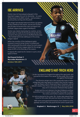 Within two months of this Hartlepool match, Liverpool moved to bring Jordon to An eld and, after working with the youth setup, the next season ended with a Premier League debut for the winger away at QPR on the nal day of the season.